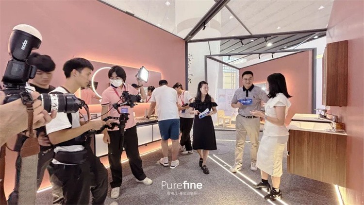 展会期间,普瑞凡展位人流如织,来自全国各地的经销商、设计师、行业同仁及消费者络绎不绝。我们的团队以最饱满的热情接待每一位到访的朋友,详细解答各类咨询,分享产品背后的设计理念与技术革新。媒体大咖深度专访,对话高定设计美学,是对普瑞凡品牌影响力与产品吸引力的双重肯定。