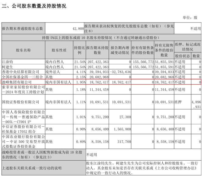 根据索菲亚2025年中报,盈峰集团持股比例已达1.95%,成为索菲亚一位不容忽视的“重要股东”。