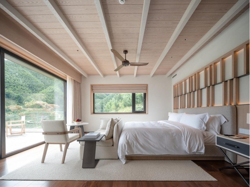 在这个融合了多元美学的秘境里,虽然仅设有10间客房,但每一间都个性鲜明,从40㎡到200㎡不等的空间里,推窗即见无限风景。如果说室外是一场宛若进入法国秘境的穿越之旅,那么在室内则会感受到另一种惬意。
