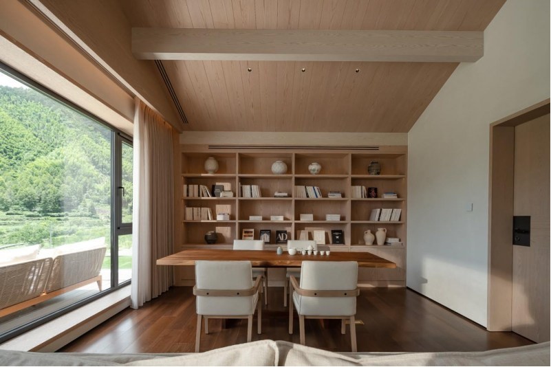 自然界的元素被巧妙幻化成室内生灵:庭院房内悬垂的绿植选用耐旱植物;茶空间里陈列的瓷器与家具,透着浓浓的古朴气息;白、黄等呼应着白云/沙滩等自然风光的色彩随时能映入眼帘...