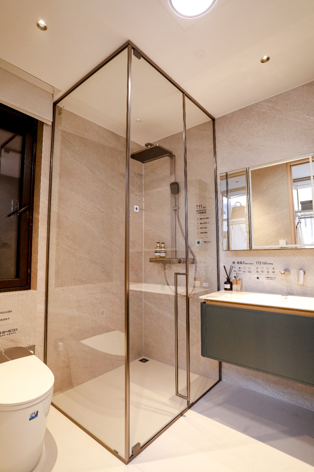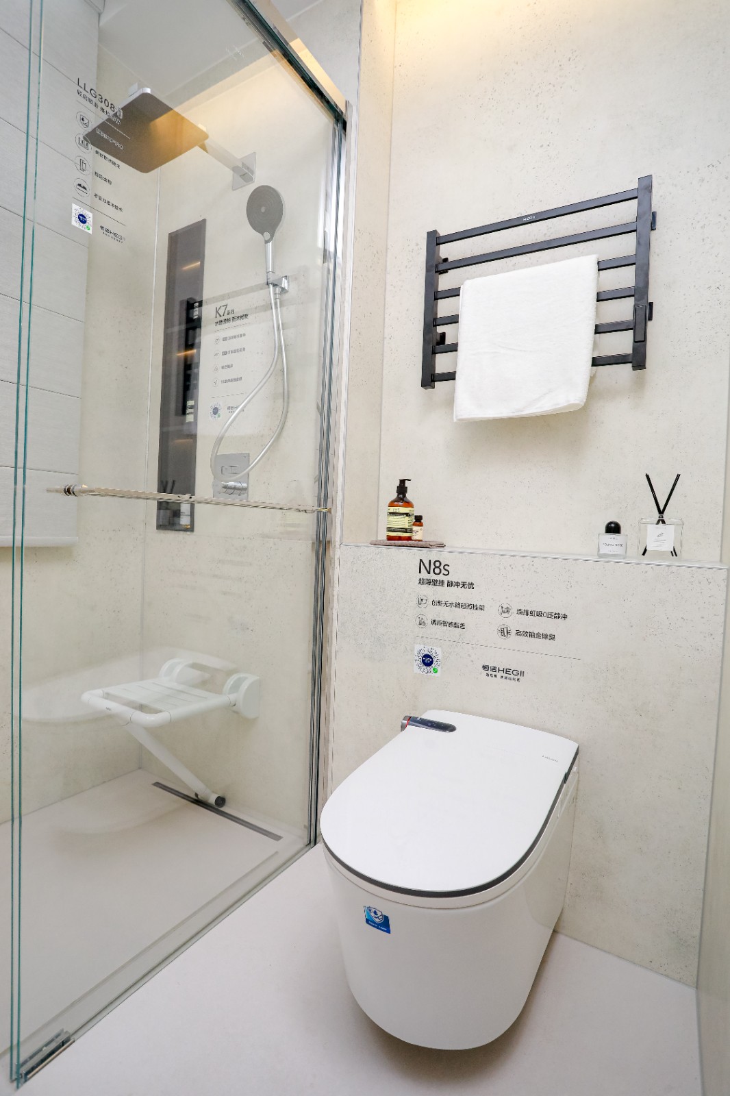在国家住建部“近零碳好房子”样板间中,恒洁提供了主卫与公卫两大空间方案,涵盖智能R8、N8S壁挂智能一体机、T11智臻系列花洒、繁花系列浴室柜、308系列淋浴房、暗装龙头等全品类星品。通过系统化设计与技术集成,恒洁从多个维度诠释了“好房子”的四大标准。