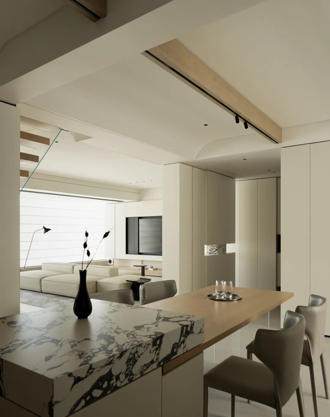 常见的纯白、米色、浅灰、浅咖色等与现盛行的奶油风、轻奢风、极简风、高级灰风、中古风等都可以很好地融合在一起,具有极高的颜值和美观效果。让每一扇柜门都成为空间美学的点睛之笔,彰显出空间的高端。