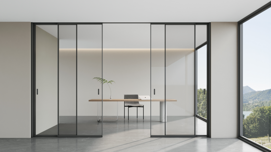 1.极窄边框:重塑空间的“画框”边框是推拉门视觉重量的主要来源。传统推拉门型材边框宽度可能达到5-8厘米,而新一代极简推拉门则能将边框宽度压缩至惊人的1.5-2厘米。这不仅仅是材料的节省,更是对结构设计和型材挤压工艺的极致考验。荣高的极窄推拉门会采用高强度铝合金6063-T5航空级铝材,在保证整体抗风压性和稳定性的前提下,实现边框的极致纤细。