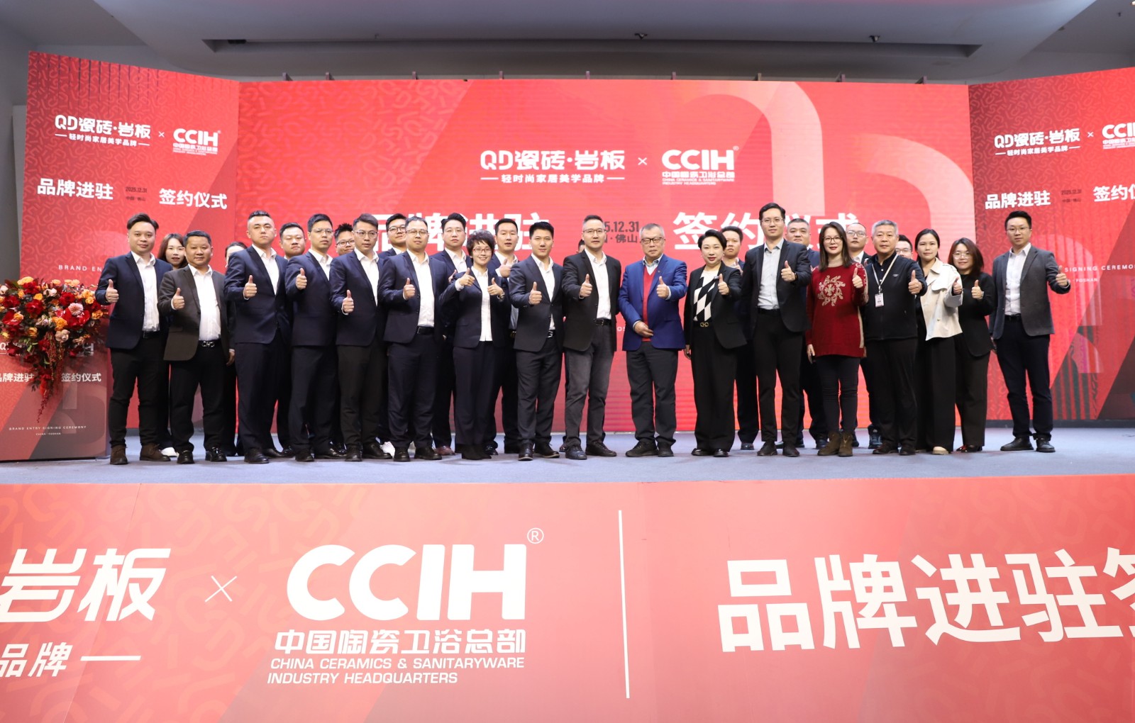 12月31日,QD瓷砖×中国陶瓷卫浴总部进驻签约仪式,在中国陶瓷卫浴总部隆重举行。佛山市陶瓷行业协会会长尹虹博士、蒙娜丽莎集团总裁办主任兼采购部总监杨青、广东蒙创致远新材料科技有限公司、QD瓷砖品牌副总经理王茂盛以及佛山中陶城集团副总裁、中国陶瓷卫浴总部|中国岩板·新材展示采购基地总经理汤洁明等一众领导嘉宾,共同见证QD瓷砖品牌与中国陶瓷卫浴总部的强强联合。
