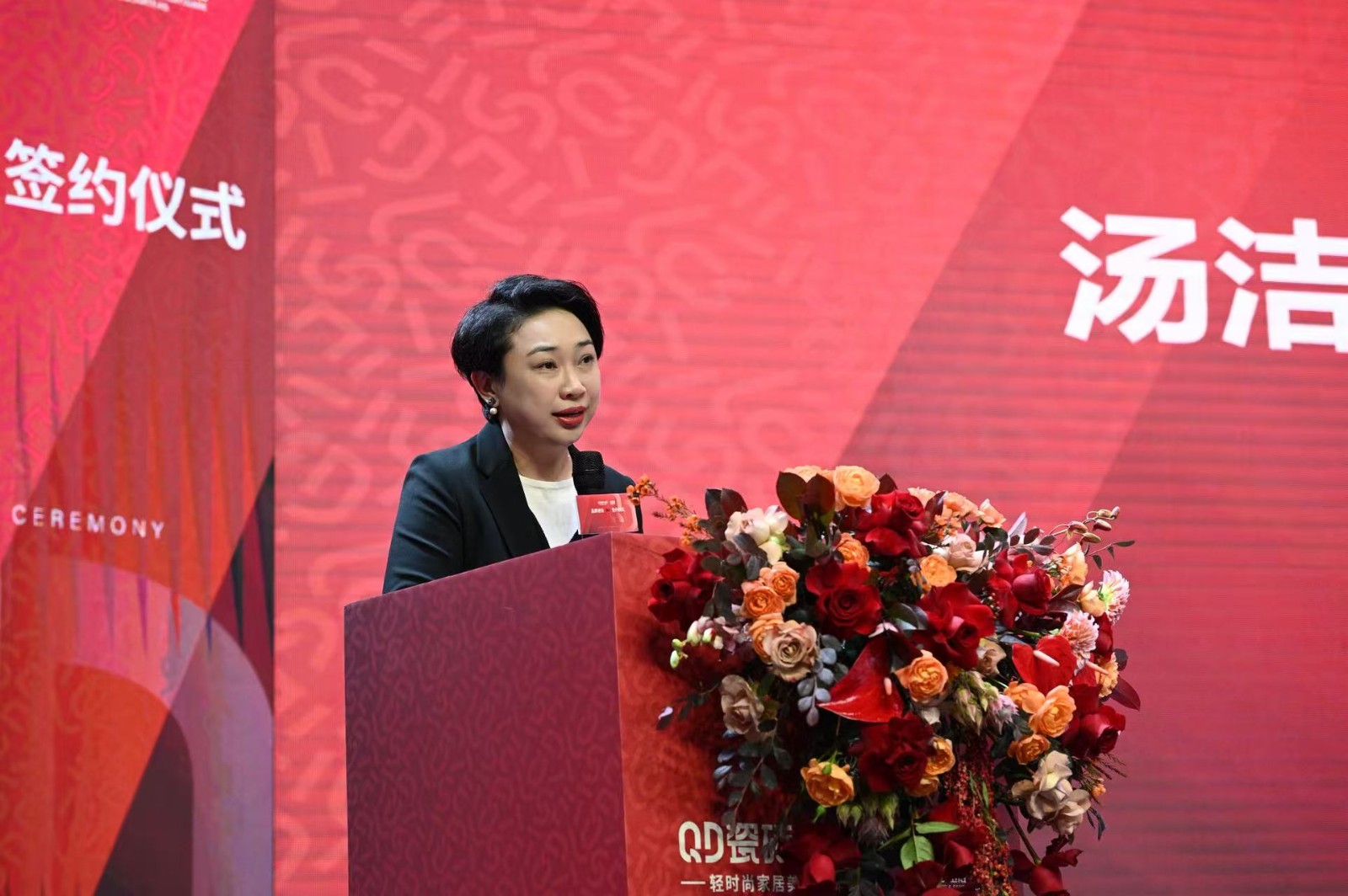 佛山市陶瓷行业协会会长尹虹博士作为QD瓷砖多年的品牌挚友认为,QD瓷砖进驻中国陶瓷卫浴总部是整个品牌战略提升的重要一环,作为轻时尚品牌代表的QD瓷砖,始终以品质至上、设计引领为方向,也正是对QD瓷砖的Q/Quality、D/Design/Direction的诠释。尹虹博士寄望,本次QD瓷砖与中国陶瓷卫浴总部的双向奔赴,将是一次双向赋能、合作共生,彼此成就,共创行业新辉煌!