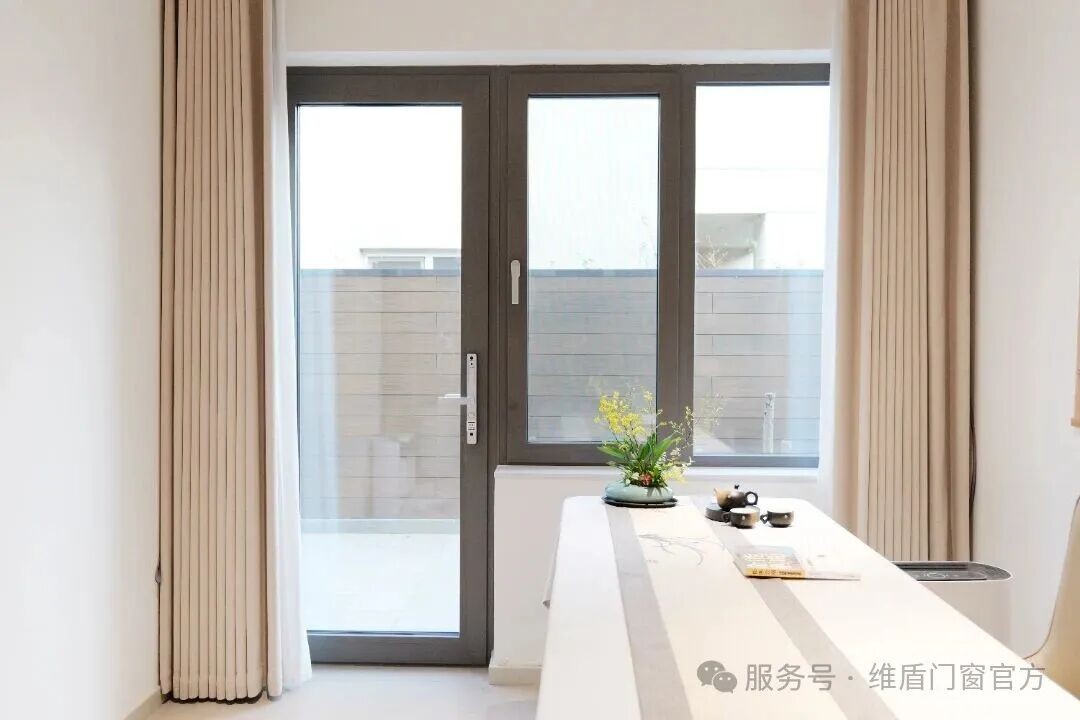 于是维盾全屋系统门窗摒弃浮夸的“炫耀性装饰”,使用低调的材质和舒缓的色调营造“去压力化”空间,以一种克制的力量感,坚定地框定着内外世界的对话方式。在这里,门窗的艺术,始于与风格的共生,终于对生活的深潜。