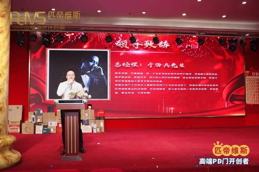 齐聚一堂,共望新程。年会伊始,匹帝维斯PD门总经理于海兵先生(下文简称于总)上台致辞,总结2025年的工作,擘画2026战略新蓝图,明确了新一年公司发展的核心方向,并对到场的所有来宾致以最诚挚的新年祝福,期望新的一年继续同心协力创辉煌!