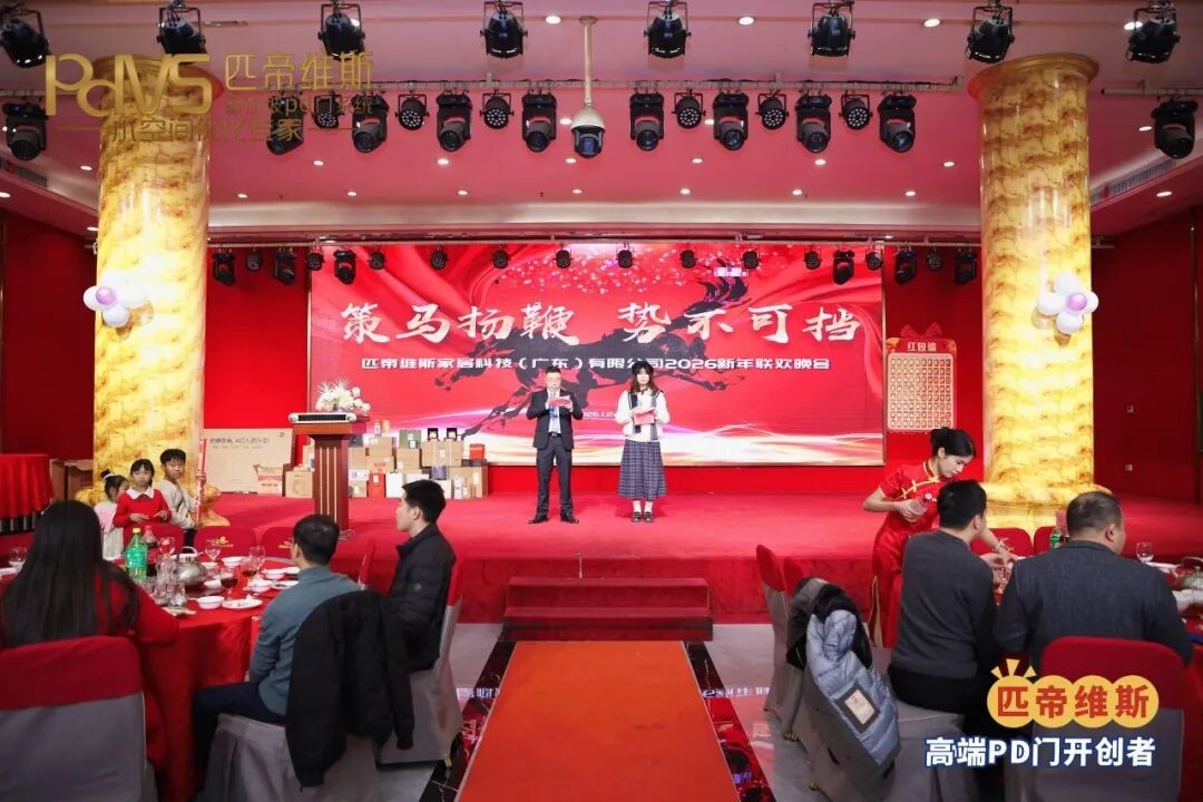 当岁末的钟声敲响奋进的序曲,当创新的光芒照亮行业的征途。1月24日,以“策马扬鞭•聚力同行”为主题的匹帝维斯PD门2026迎春晚会在佛山锦绣香江大酒店隆重举行,本次年会现场众多嘉宾与匹帝维斯PD门的家人们齐聚一堂,共同辞旧迎新,举杯迎新年!