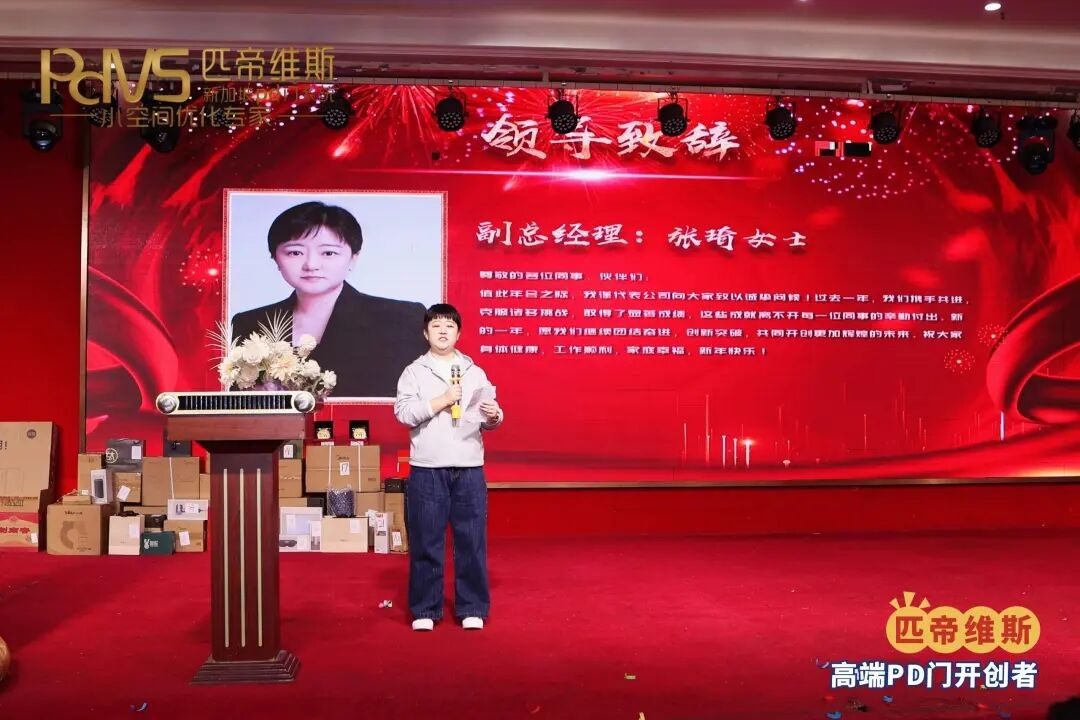 接下来,匹帝维斯PD门副总经理张琦女士(下文简称张总)上台发表讲话,首先对全体家人过去一年的工作给予了高度的肯定与感谢,同时展望2026年,希望大家继续凝心聚力共奋进!