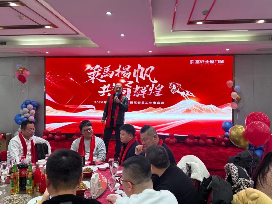 策马扬帆,共“窗”辉煌。马年春节将至,过去一年的奋斗硕果已圆满收官,在这一欢庆时节,富轩全屋门窗华东区域经销商年度盛典,于2月3日在无锡翠竹苑丽呈酒店圆满举办,富轩门窗营销总经理翁总、富轩门窗华东战区总监冯总等领导,与华东区域经销商家人齐聚一堂,共同复盘2025年区域业绩,共商2026战略方向,并在热烈的氛围中携手同庆马年新春。